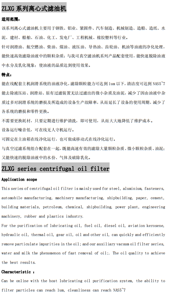 ZLXG系列離心式濾油機(jī)